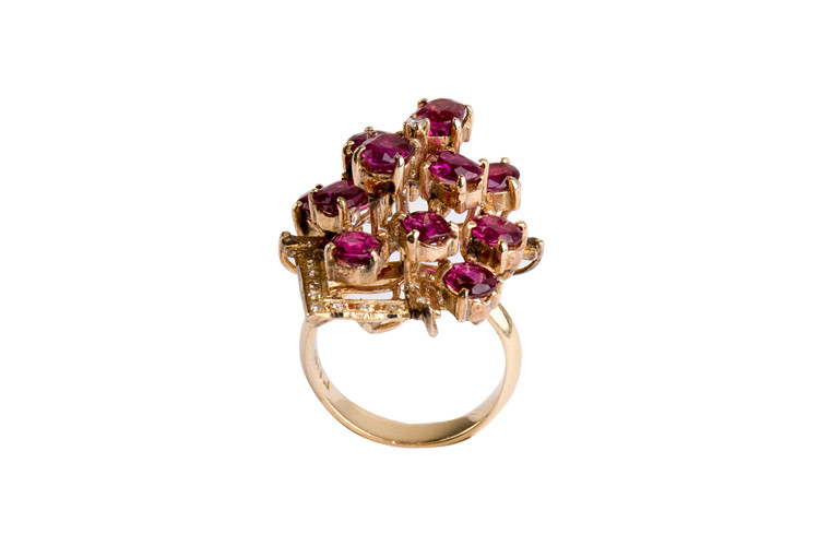 Lot 65 | Anello oro giallo con rubini e diamantini. Rubini cti. 3 c.ca Oro 18 Kti....