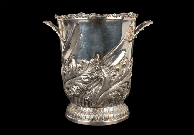 Portachampagne con foglie e manici lavorato a mano. altezza cm 23 Arg 800 /°°° gr. 1214