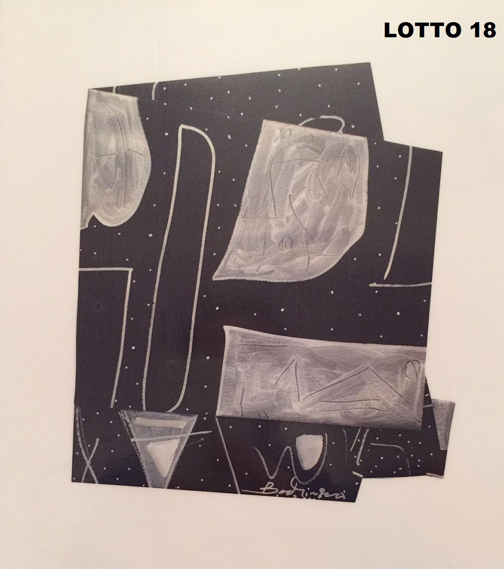 CESARE BERLINGERI (1948) STIMA 5.000,00 * / 6.000,00 DIPINTO TECNICA MISTA SU CARTA PIEGATA INTITOLATO “SUL NERO” MIS. 57 X 65 ANNO 2000 FIRMATO IN BASSO AL CENTRO “BERLINGERI 2000” CORREDATO DA AUTENTICA SU FOTO PROVENIENZA: COLLEZIONE PRIVATA