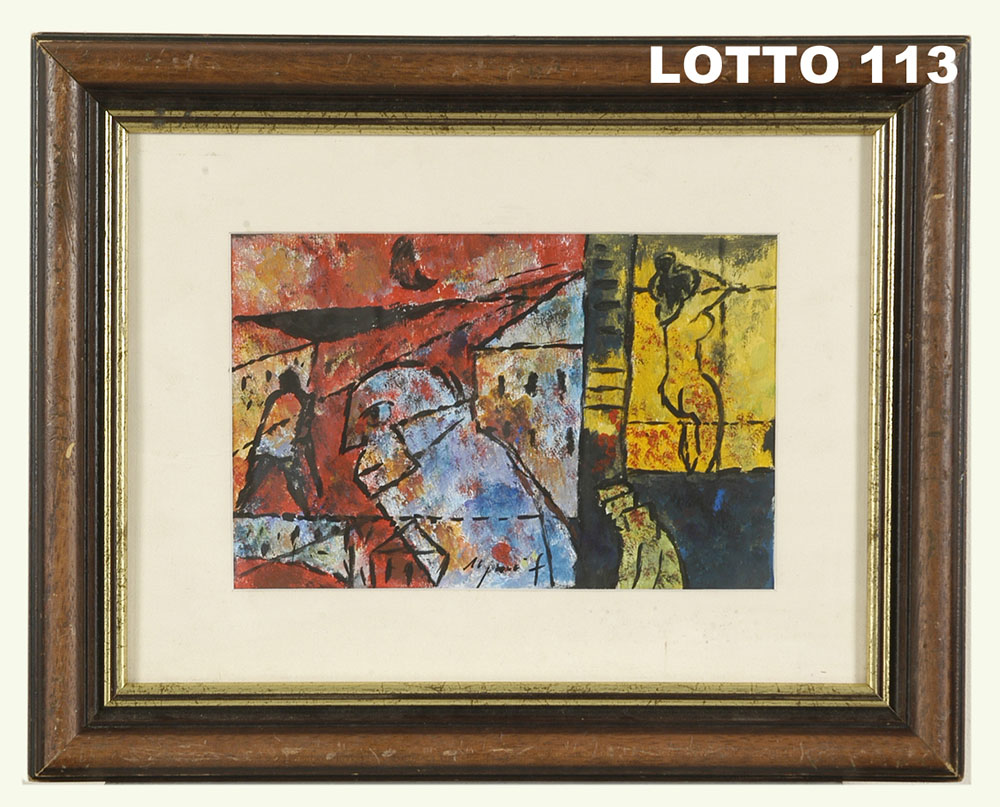 FRANCO ROGNONI (1913 – 1999) STIMA 700,00 / 1.500,00 DIPINTO TEMPERA SU CARTA RAFF. FIGURE MIS. 20 X 30 FIRMATO IN BASSO AL CENTRO A RETRO TIMBRO “SEMENZATO” VENEZIA