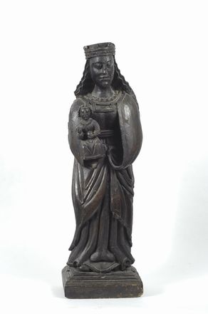 Madonna con Bambino Antica scultura in legno intagliato, cm. 73x22.
