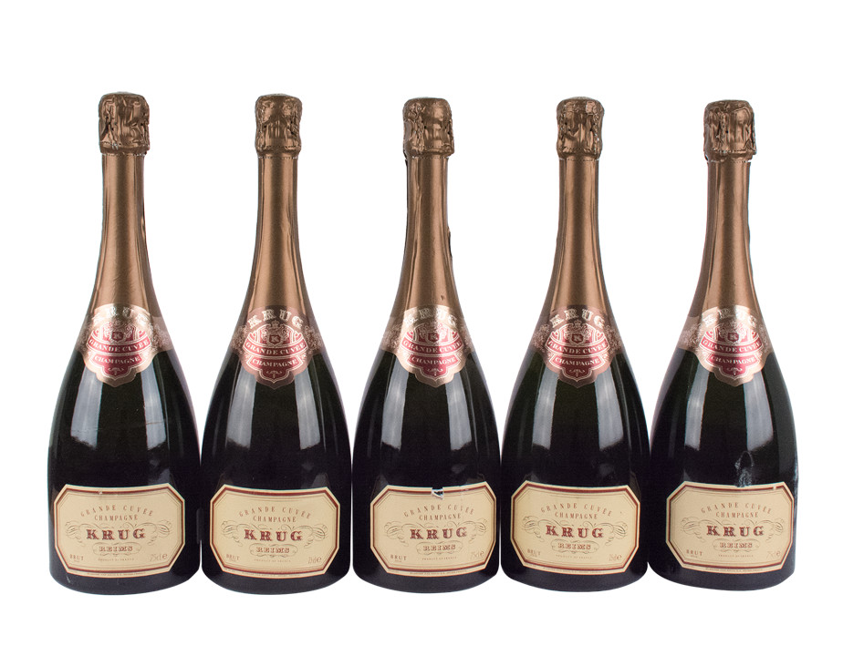 Champagne Grande Cuvée Krug ( Tot. 5 bt 0,75 lt. ) 2 bt with damaged labels / 2 bt con etichette rovinate.