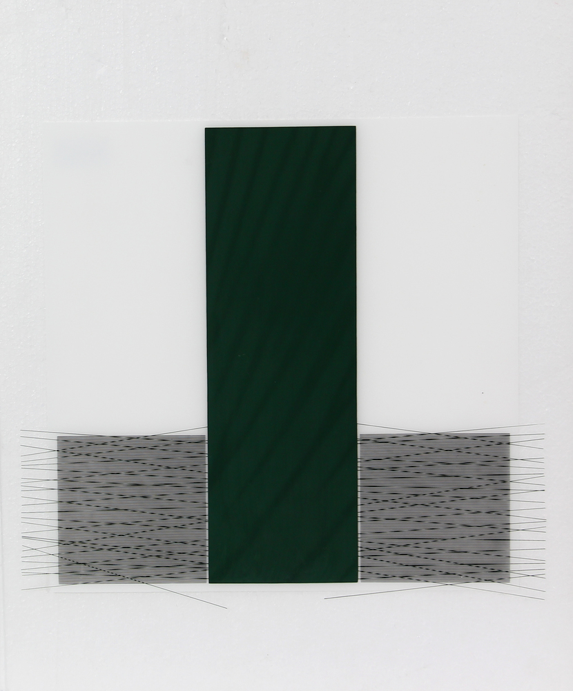 Jesus Rafael Soto, Jai-Alai II, 1969 circa, serigrafia bianco, nero e verde su plexiglass, es. E/A di 300 esemplari, cm. 62x50, firma incisa in basso a destra, edizione Marlborough Gallery di Roma, opera pubblicata sul catalogo della Galleria Colophon di Milano, senza cornice