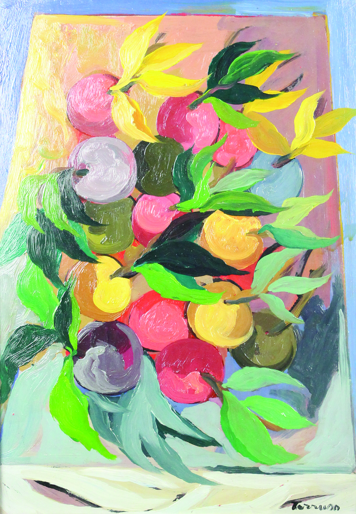 Saverio Terruso, Natura Morta, 1982, olio su tavola, cm. 50x35, firmato in basso a destra, firmato, intitolato, dedicato, archiviato e datato al retro, certificato di archiviazione dell'Archivio Fotografico delle Opere Saverio Terruso