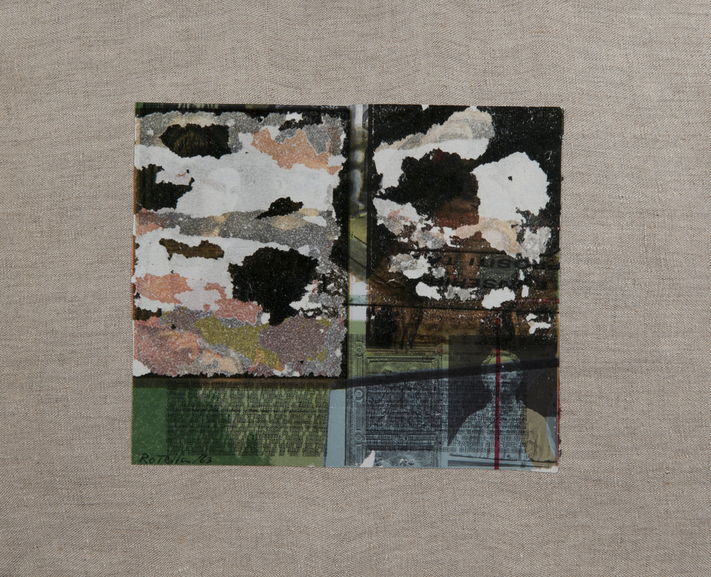 Mimmo Rotella, Italica, 1963, manifesto strappato incollato su tela, cm. 33x41, certificato di autenticità dell'artista su fotografia (in attesa dell'autentica della fondazione), firmato in basso a sinistra, dedicato al retro