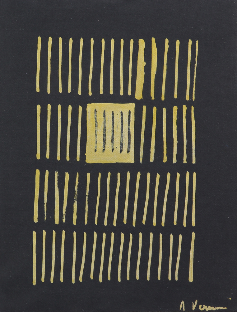 Arturo Vermi, "Diario, 1965-1966, acrilico su carta riportata su tela, cm. 31,7x24,2, firmato in basso a destra, certificato di archiviazione dell'Archivio Arturo Vermi su fotografia"