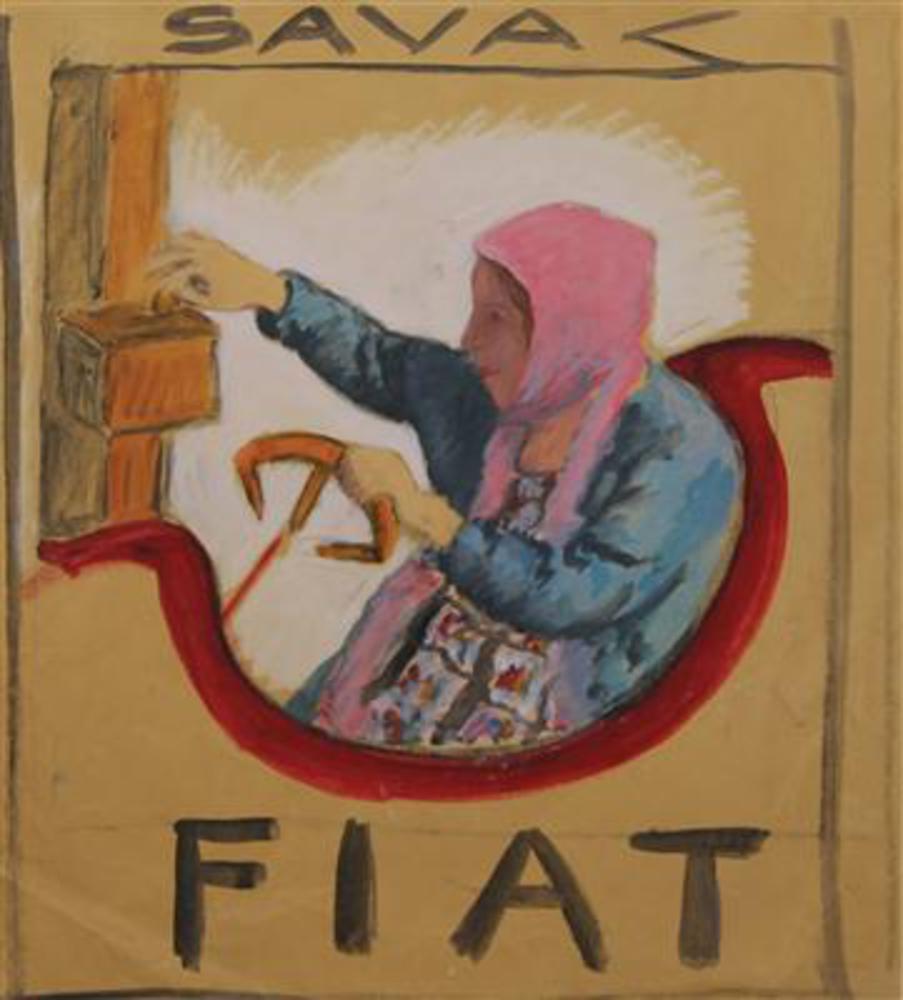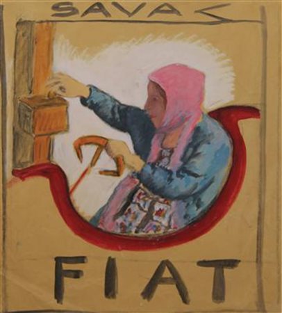 Carlo Levi, Fiat, 1930, tecnica mista su carta, cm. 41x37, firmata,...