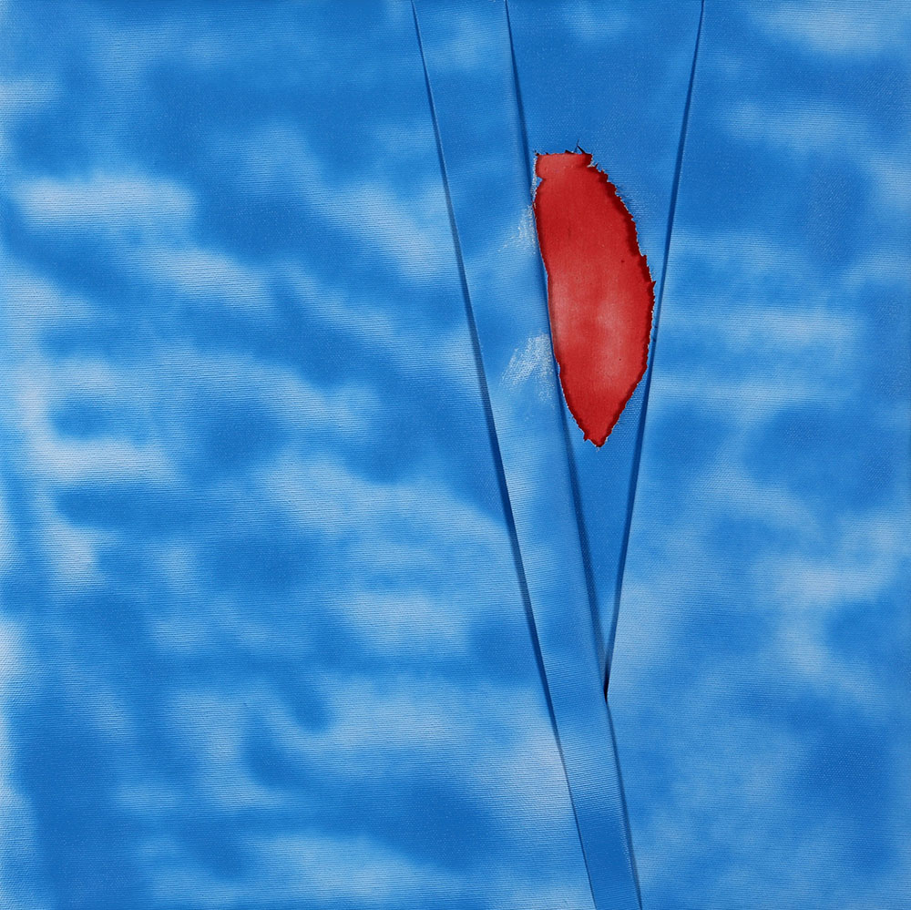 ANTONIO PAOLINO 1972 Luna in arrivo Acrilico su tela piegata e strappata, cm. 50 x 50 x 1 Firmato sul retro Autentica dell'artista su fotografia Prov. Collezione Privata