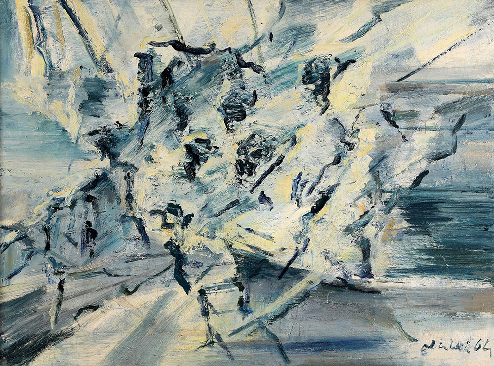 CLAUDIO OLIVIERI 1934 Senza titolo, 1964 Olio su tela, cm. 60 x 80 Firmato e datato in basso a destra Autentica dell’artista su fotografia L’opera presenta un intervento di restauro sul retro Prov. Collezione Privata