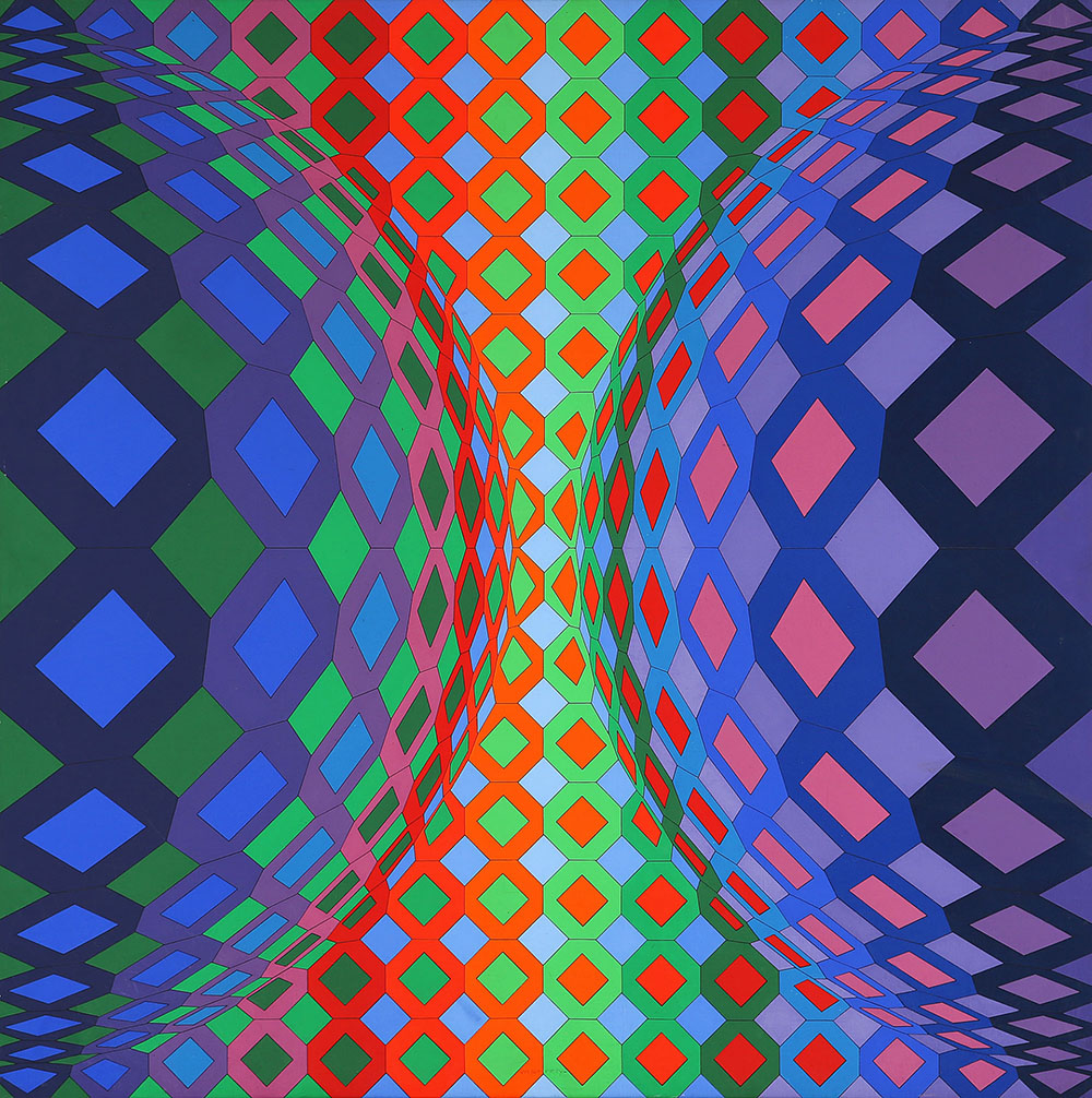VICTOR VASARELY 1906 - 1997 Reech, 1973 Acrilico su tela, cm. 100 x 100 Firmato in basso al centro Timbro Galleria Falsetti Prato sul retro Autentica di Pierre Vasarely su fotografia Prov. Collezione Privata