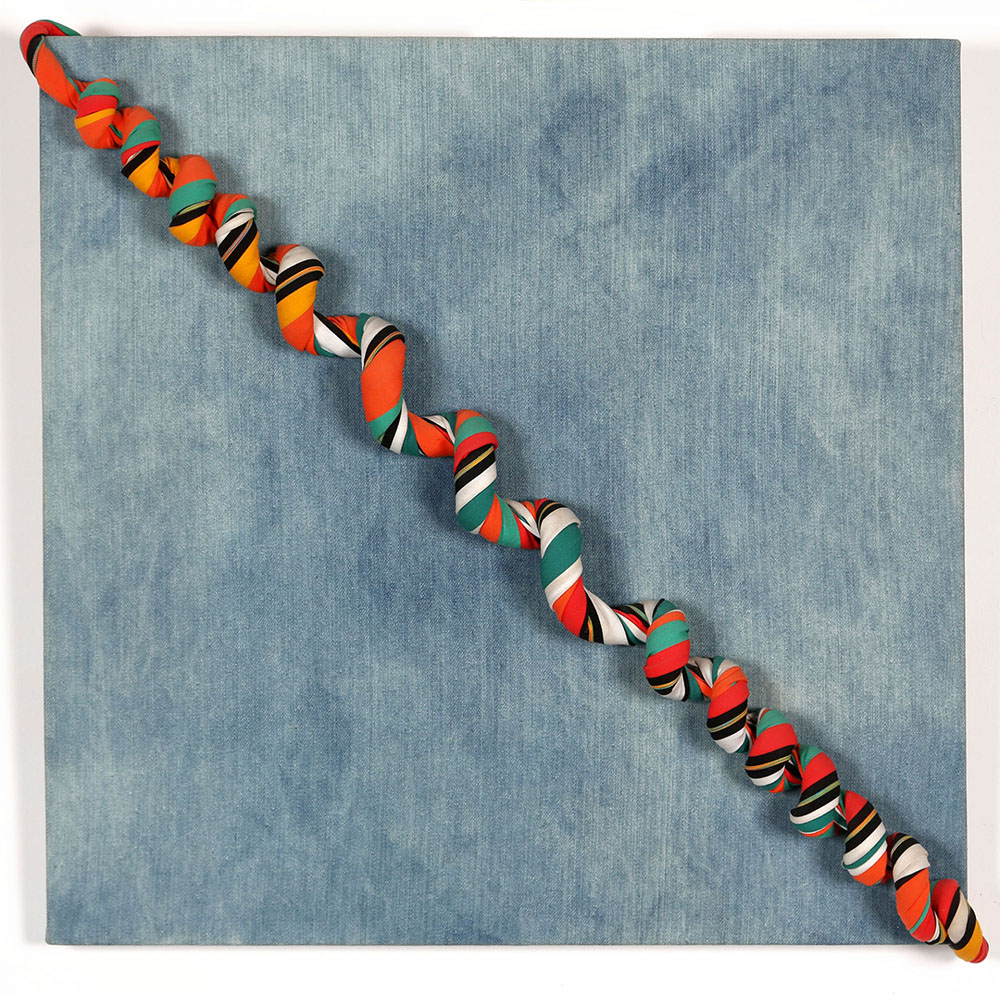 JORGE EIELSON 1924 - 2006 Amazzonia, 1999 Tessuto colorato intrecciato applicato su tela su tavola, cm. 55 x 55 Firmato e datato sul retro Autentica dell’artista su fotografia Prov. Collezione Privata