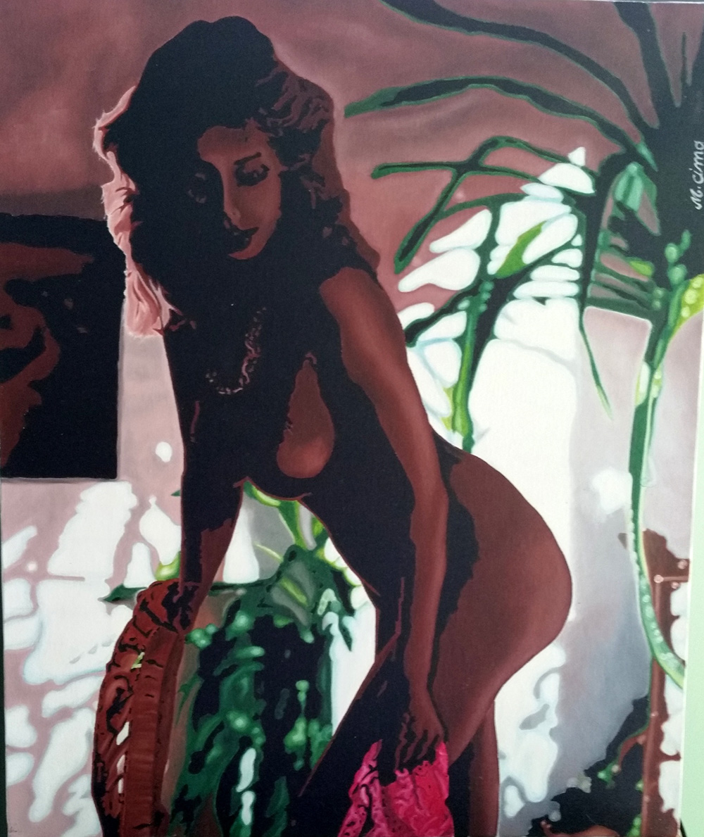 Michele Cimo'"Nella serra" olio su tela cm 60x50