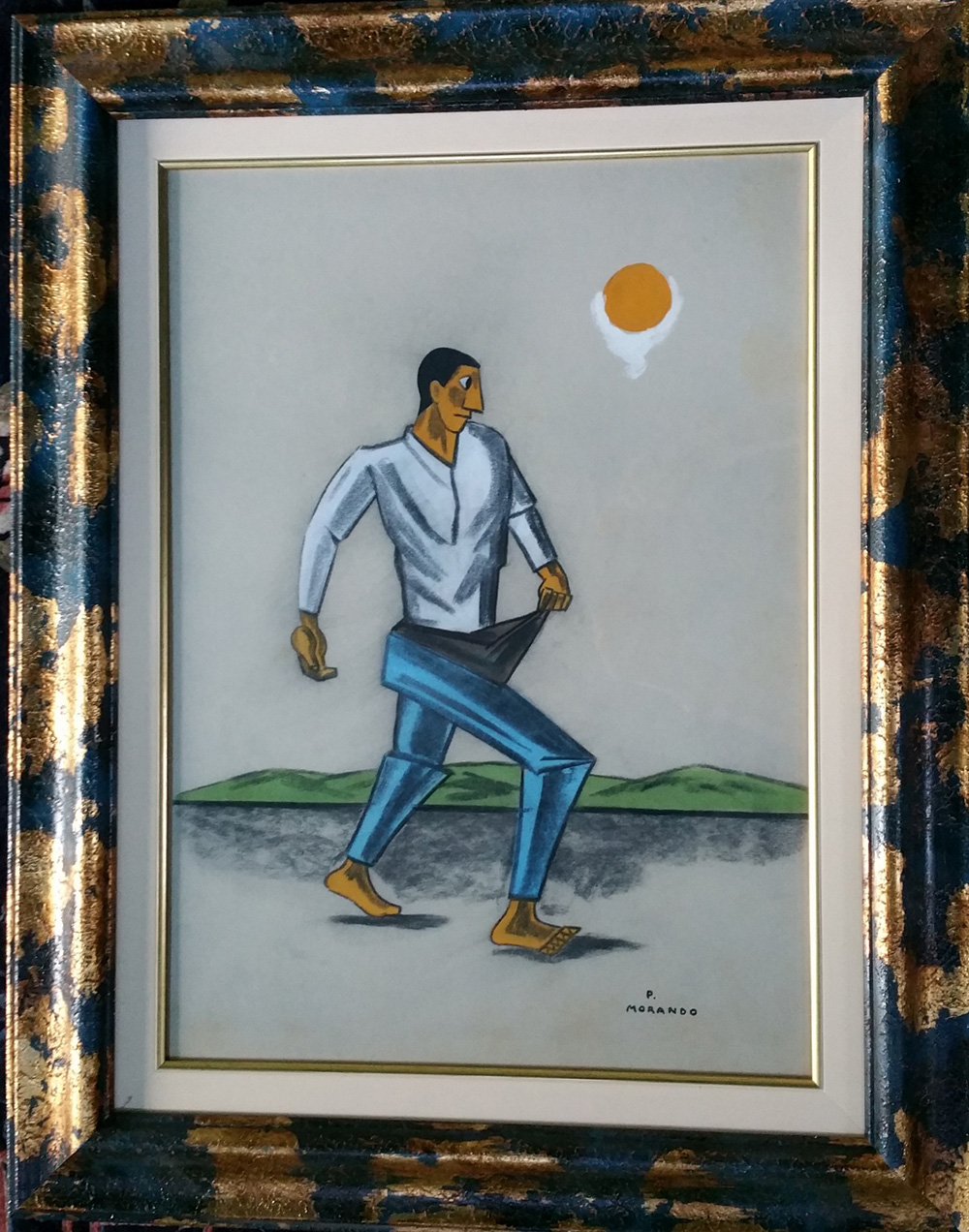 Pietro Morando "Seminatore" Tecnica mista su cartoncino cm 70x55 opera finemente incorniciata - Firma in basso a dx - Aut. su foto Galleria l'Alfiere Arte-TO