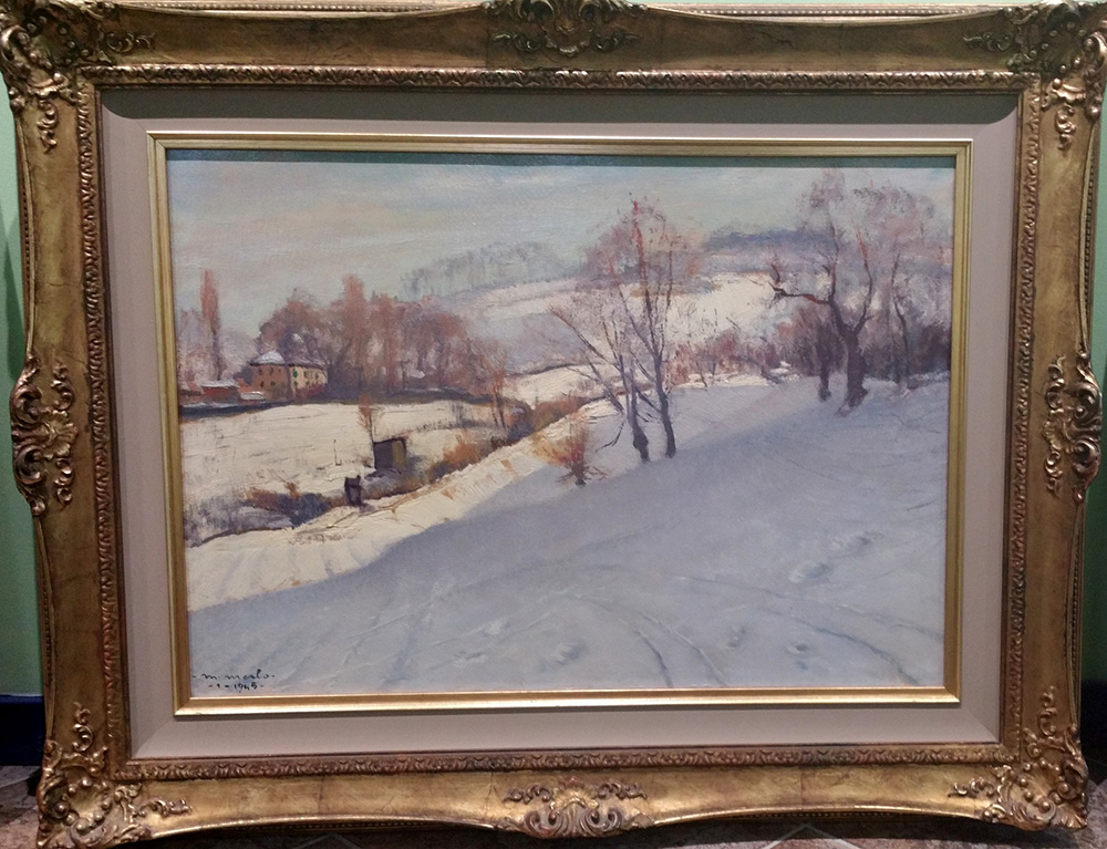 Metello Merlo "Paesaggio innevato-1945 Olio su tela cm 50x70 Autentica su foto casa D'aste Santagostino To