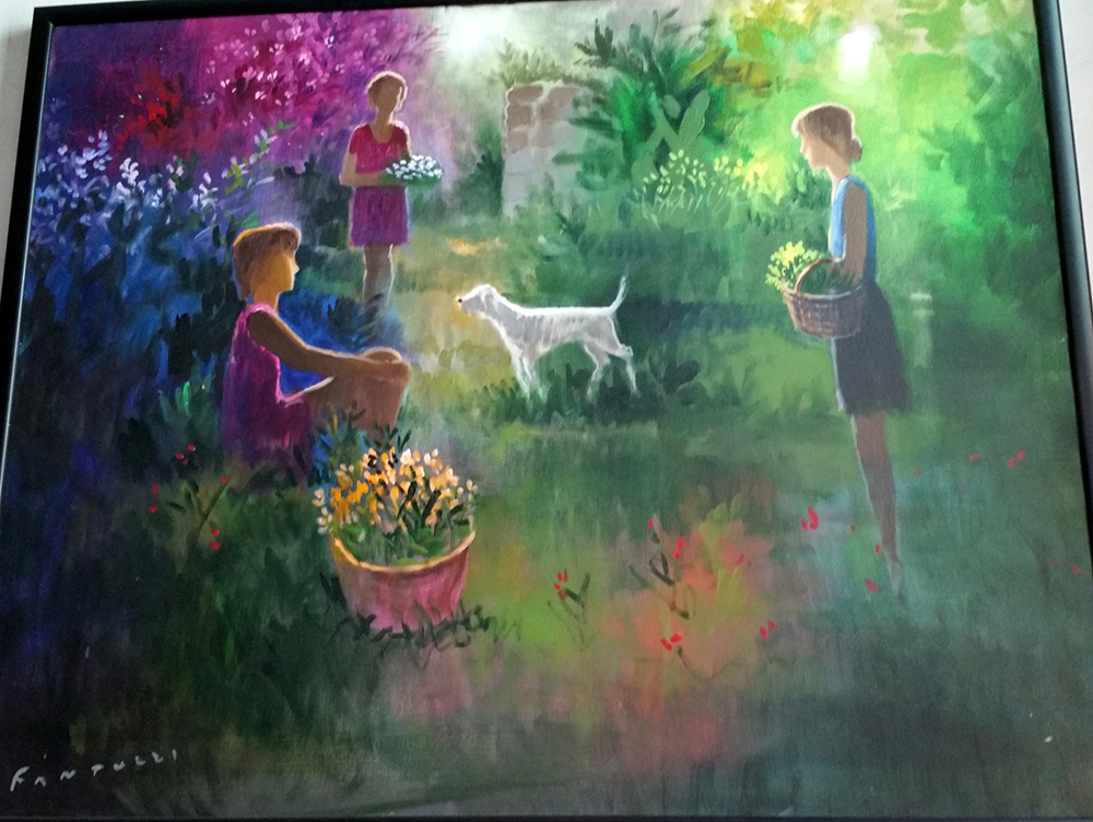 Eliano Fantuzzi "gita sui prati" olio su tela cm 80x100 Autentica su Foto Archivio Fatuzzi .Certificato su Foto Casa D'aste Stadion Ts