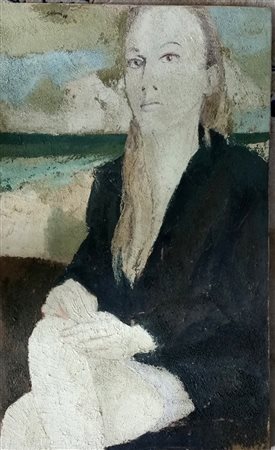 Enzo Salerni "Figura seduta" 1969 - Olio e sabbia su tela - cm 83x50 - Firma...