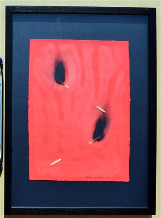 Bernard Aubertin "Fiammiferi su cartoncino rosso" - cm 50x35 - Autentica e archivio su foto - Opera gia' dotata di bella cornice e pubblicata su importante monografia