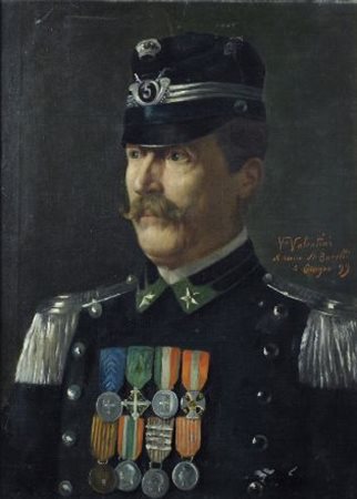 Valentino Valentini (1858-?) RITRATTO DI UFFICIALE, 1899 Olio su tela, cm. 61x48 Firma, dedica e data sul lato destro.