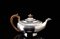 Teiera in argento di forma circolare schiacciata, modanata, con spalla e...