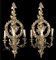 Coppia di appliques in legno intagliato e dorato sormontate da elemento a...