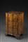 Comodino a tre cassetti mossi sul fronte, lastronato e filettato in noce e radica. Maniglie e bocchette in bronzo. Veneto, sec. XVIII (cm 46x74x36) (lievi difetti e restauri) Walnut veneered and inlaid bedside table (minor defects)