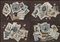 Gruppo di sei trompe líoeil a collage. Sec. XIX (cm 50x70) In cornici con...