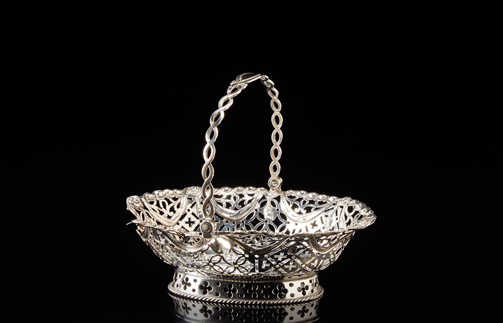 Cestino in argento con manico, traforato di forma ovale. Londra, seconda met‡...