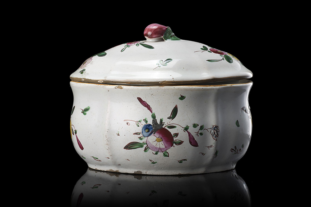 Zuccheriera in maiolica decorata fiori (h. cm 11 x 13) Lodi, sec. XVIII...