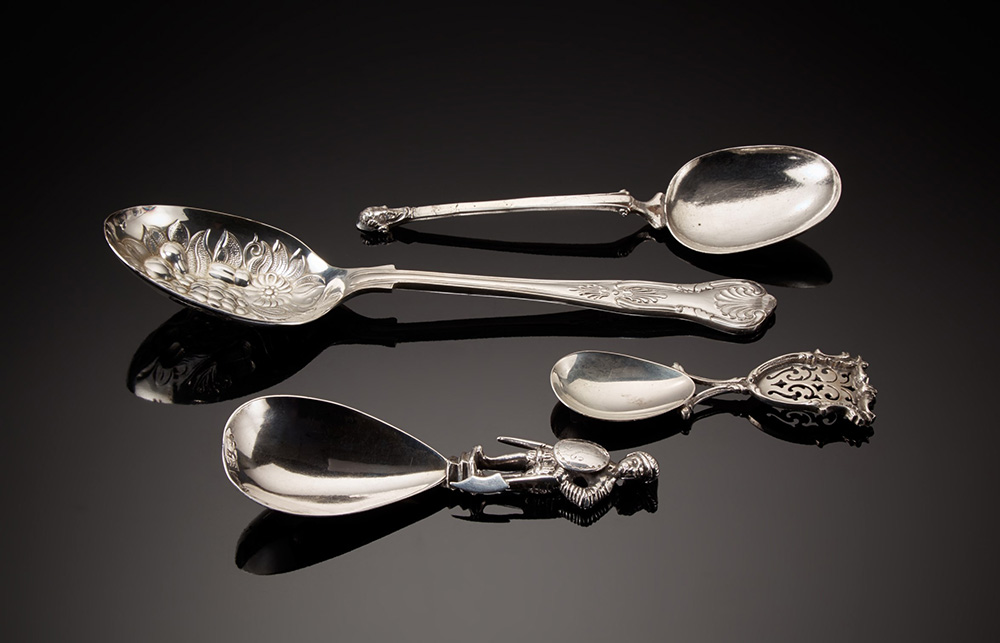 Lotto di tre cucchiai in argento e uno in metallo (gr 150 ca.) (difetti) Lot...