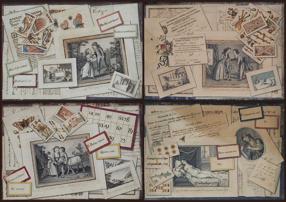Arte del sec. XIX. Gruppo di otto trompe l'oeil ad acquarello china su carta...