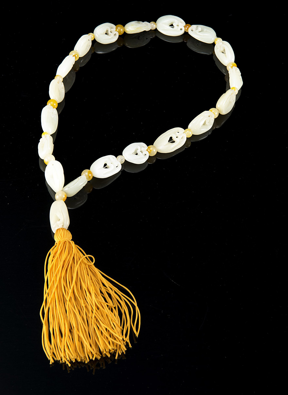 Collana in giada composta da diciannove intagli raffiguranti la mano del...