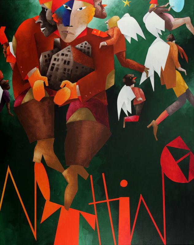 EMILIO TADINI (1927-2002) Fiaba 1999 olio su tela cm 160x130 firmato e titolato sul retro autentica dell'artista su fotografia provenienza: Galleria Aminta Siena