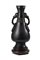 Vaso in bronzo dalla forma arcaica, con doppie anse e anelli in sospensione, decorato con motivi stilizzati, con base in legno Cina, tarda dinastia Ming (1368-1644) A bronze vase of archaistic form, with twin monster head handles suspending rings, decorated with stylised motifs, with wood base China, late Ming dynasty (1368-1644) (h. 28 cm.)