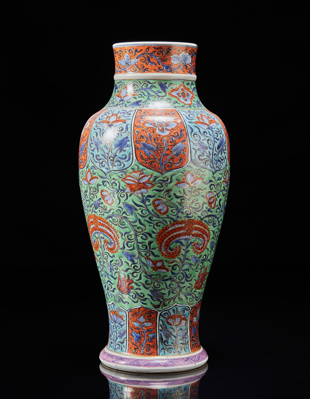 Vaso in porcellana a smalti policromi con decori floreali nei toni del rosso, verde e blu Cina, sec. XIX A polychrome-enamelled porcelain vase decorated with flowers in red, blue and green tones China, 19th century (h. 45 cm.)