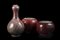 Due ciotole con invetriatura sangue di bue e un vaso "garlic neck" con...