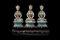 Set di tre Buddha in porcellana con smalti "robin's egg", raffigurati seduti...