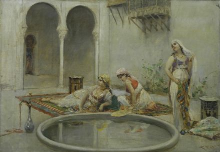 Fabbi Fabio (Bologna 1861 - Casalecchio di Reno 1946) ODALISCHE A RIPOSO Olio su tela, cm. 38x55 Firma in basso a destra.