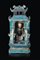 Piccolo tempio in biscuit smaltato in turchese e color melanzana, decorato...