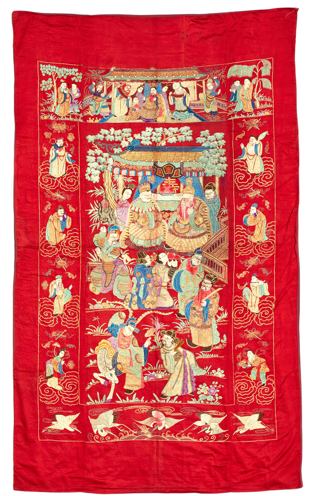 Lot 2255 | Tessuto in seta rossa ricamato con decorazione di processione al tempio Cina,...