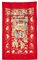 Tessuto in seta rossa ricamato con decorazione di processione al tempio Cina, sec. XX A red silk embroidery decorated with a procession to the temple China, 20th century (250x140 cm.)