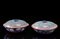 Coppia di ciotole in terracotta con coperchio smaltate con motivi floreali su...