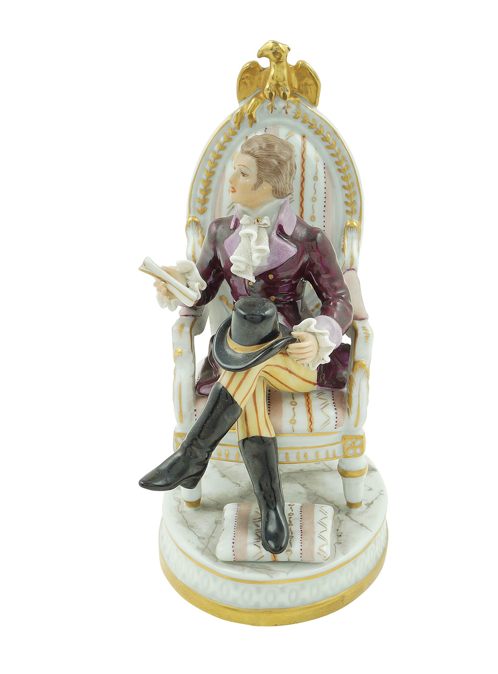 Figura in porcellana policroma Capodimonte, XX Sec. h. 15 cm. raffigurante un gentiluomo in costume settecentesco, poggiante su base ovale