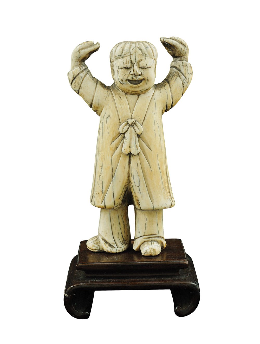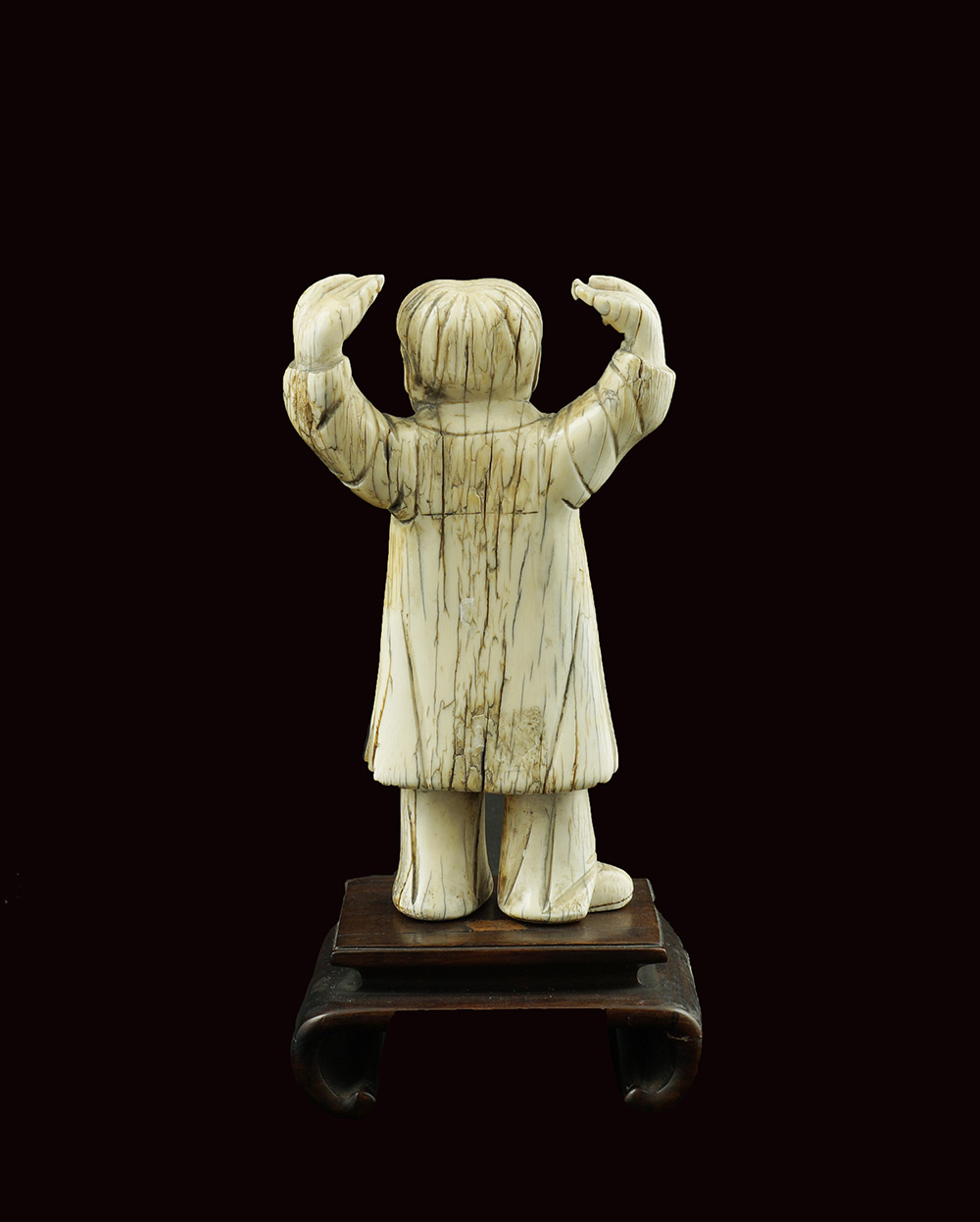 Scultura in avorio manifattura orientale del XIX Sec. peso 285 gr. scolpita a raffigurare un giovane scolaro, poggiante su base in legno, h. 20 cm.