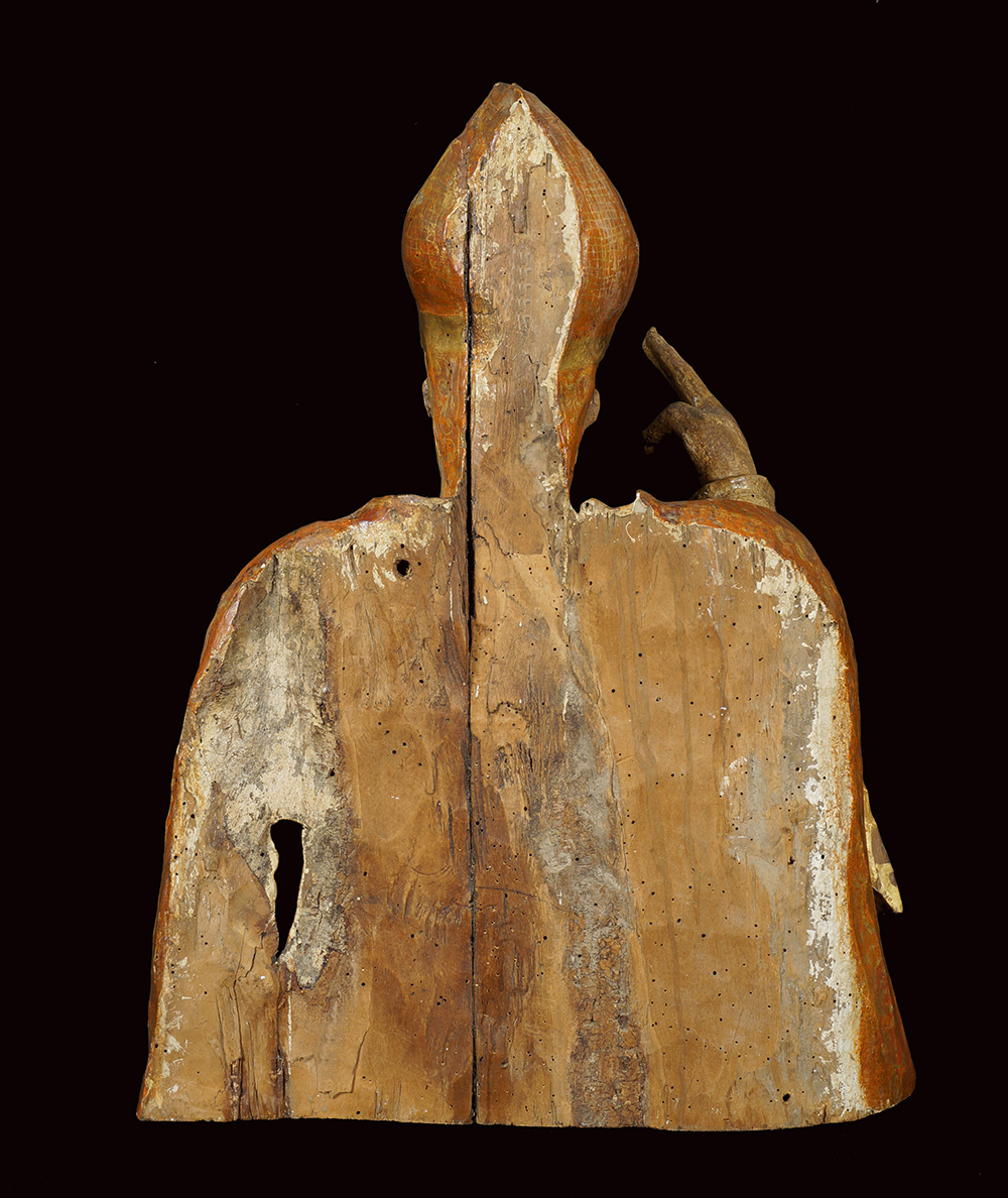Antica scultura lignea Italia, XVII Sec. 70x40x34 cm. raffigurante "Sant' Agostino", finemente dorata e laccata in policromia, lievi difetti