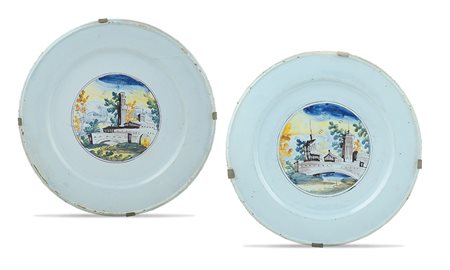 Coppia di grandi piatti da parata in maiolica Pavia, inizio XVIII Sec. d. 42...