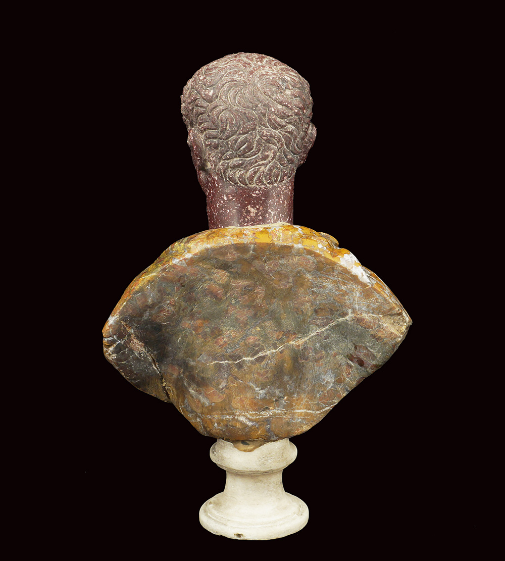Piccolo busto in porfido e diaspro agatato Roma, XIX Sec. h. 27 cm....