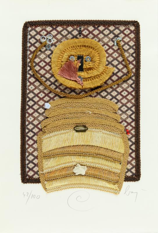 ENRICO BAJ (1924-2003) Baci e abbracci 2001 Tecnica mista. su carta esemplare 42/100 cm 50x35 opera facente parte della cartella "Nascosti intrecci" con testo di G.Dorfles edizione Colophon