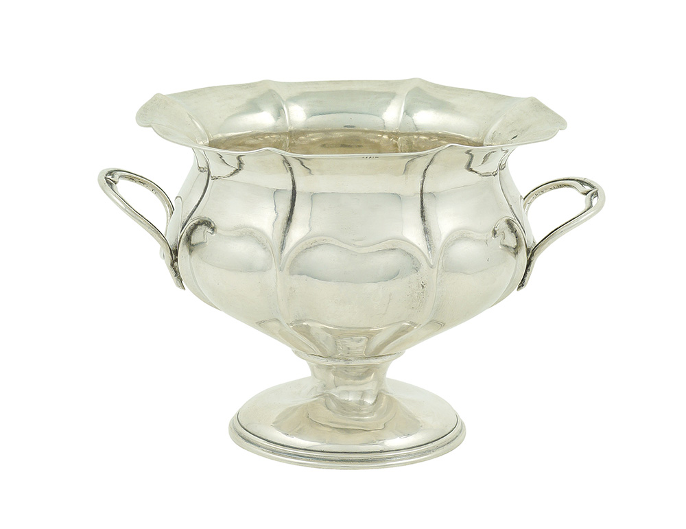 Zuccheriera in argento a due manici Mosca 1882 h. 8 cm. argentiere Vassilij Ivanov, corpo baccellato poggiante su base circolare, peso 192 gr.