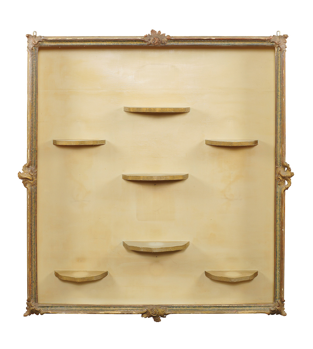 Grande bacheca in legno laccato e dorato Francia, XIX Sec. 153x137x17 cm. cornice intagliata a motivi vegetali, lievi difetti
