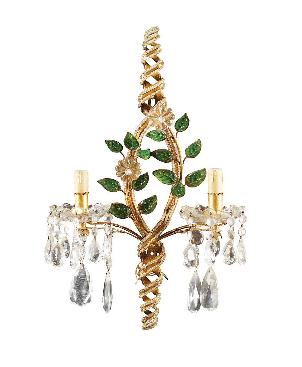 Lot 494 | Coppia di appliques a due luci inizio XX Sec. 54x30 cm. supporto in metallo...